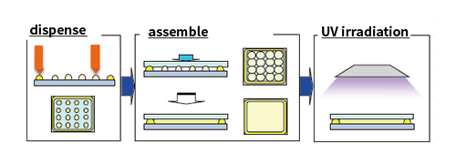 • UV照射斷面部分(側(cè)面照射會對液晶造成損傷)