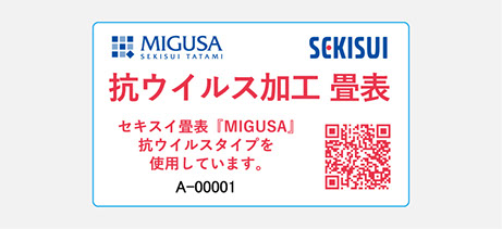 本標(biāo)簽用于證明這是經(jīng)過防病毒加工的榻榻米。我們準(zhǔn)備了這個標(biāo)簽,是為了讓客人能夠更加安心地使用MIGUSA。