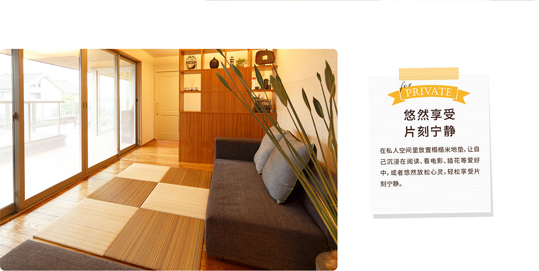 細(xì)致的紋路令人倍感新鮮。如果使用無(wú)邊型榻榻米,可以從視覺上放大空間。