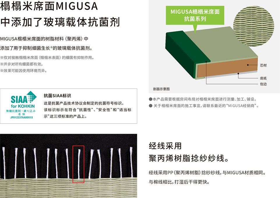 榻榻米席面 [MIGUSA]:聚丙烯、碳酸鈣、