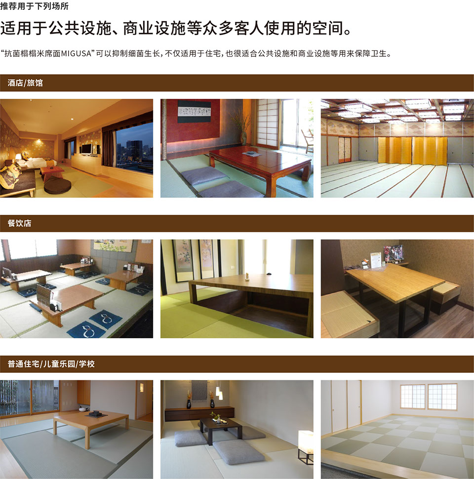 傳統(tǒng)之美。從普通家庭到酒店、旅館、餐廳和各類設施,這是廣受歡迎的榻榻米席面。