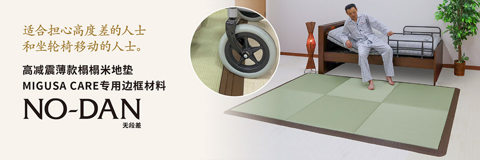 在家中跌倒可能會骨折,是導致需要護理的原因。特別是在室內跌倒導致骨折的事情很多。經(jīng)過多年的研究,MIGUSA關懷還原了榻榻米原有質感※1。可以緩沖撞擊的榻榻米。這款榻榻米是與醫(yī)學工程和生活環(huán)境研究領域的專家一起精心研究和開發(fā)的。